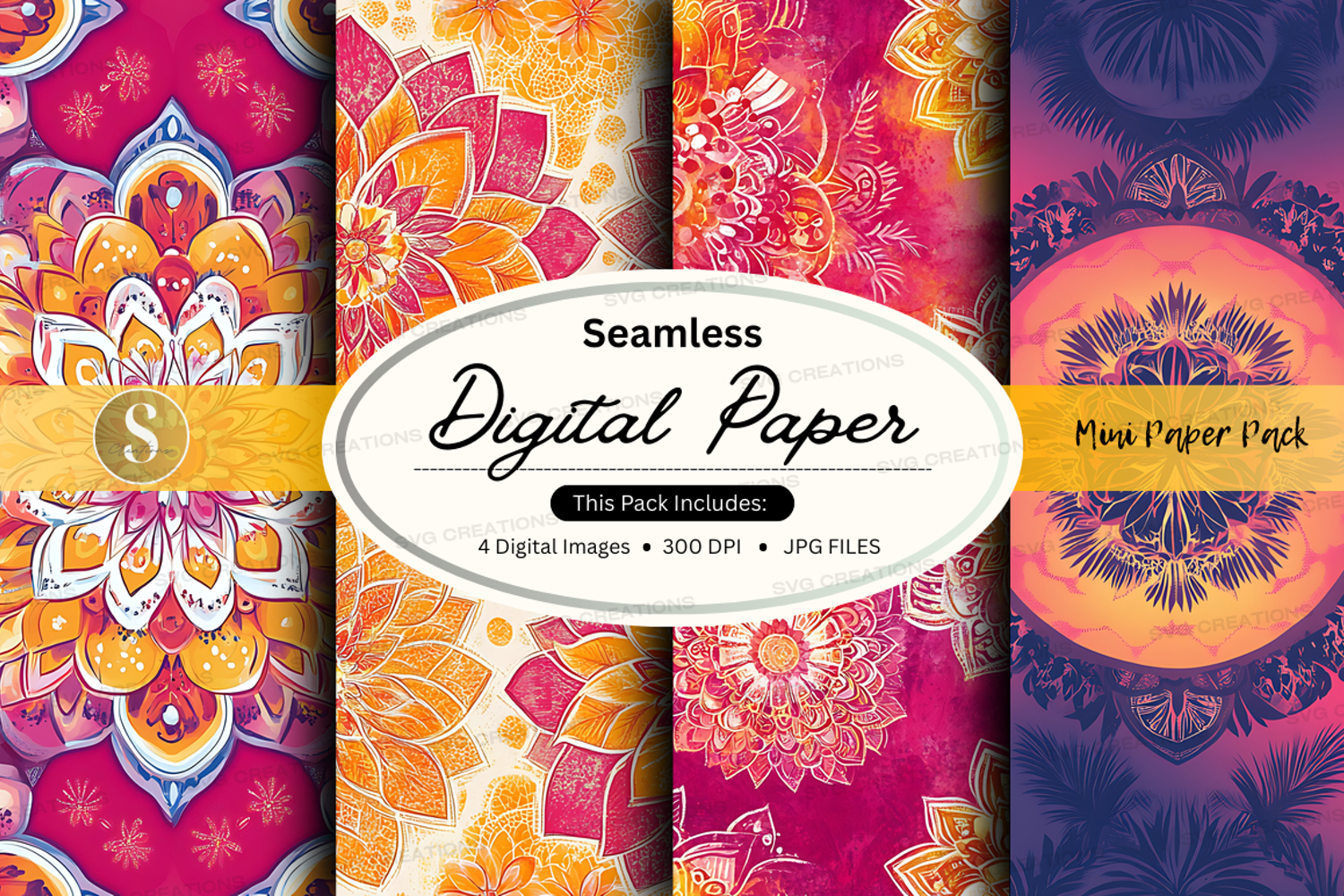 Pattern Digital Paper Background Mandala Seamless Scrapbooking Jpeg Crafting 300 Dpi