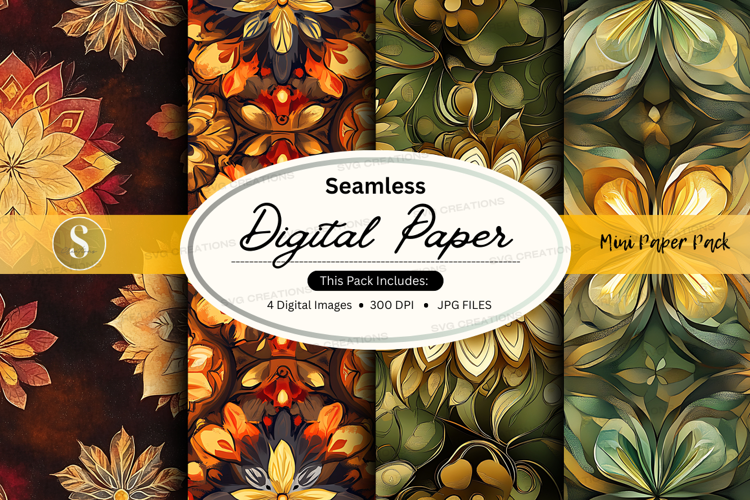 Digital Paper Seamless Pattern Floral Design 300 Dpi Autumn Colors Jpeg Files Pattern Pack