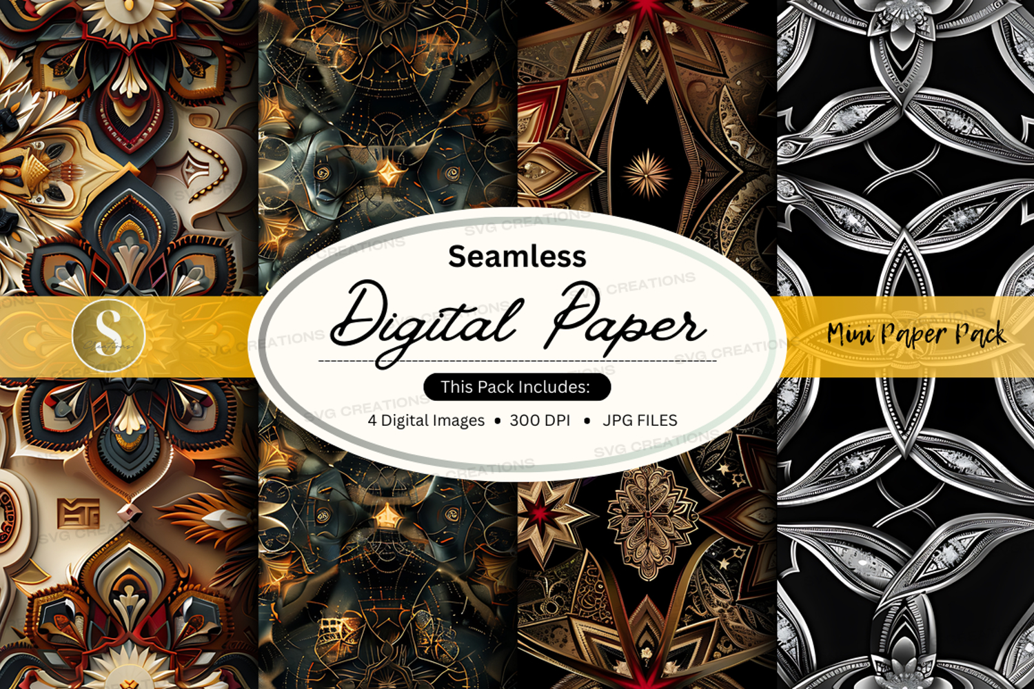 Digital Paper Gold Patterns Decorative Paper Seamless Paper Dark Background Silver Patterns High-resolution Jpeg Files Ornate Patterns