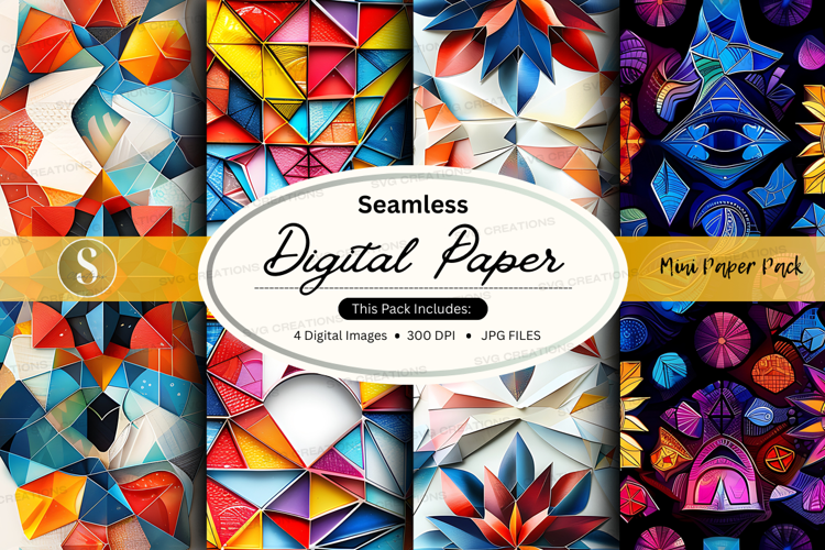 Digital Paper 300 Dpi Geometric Patterns Seamless Paper Jpeg Files Mockup Pack Colorful Designs