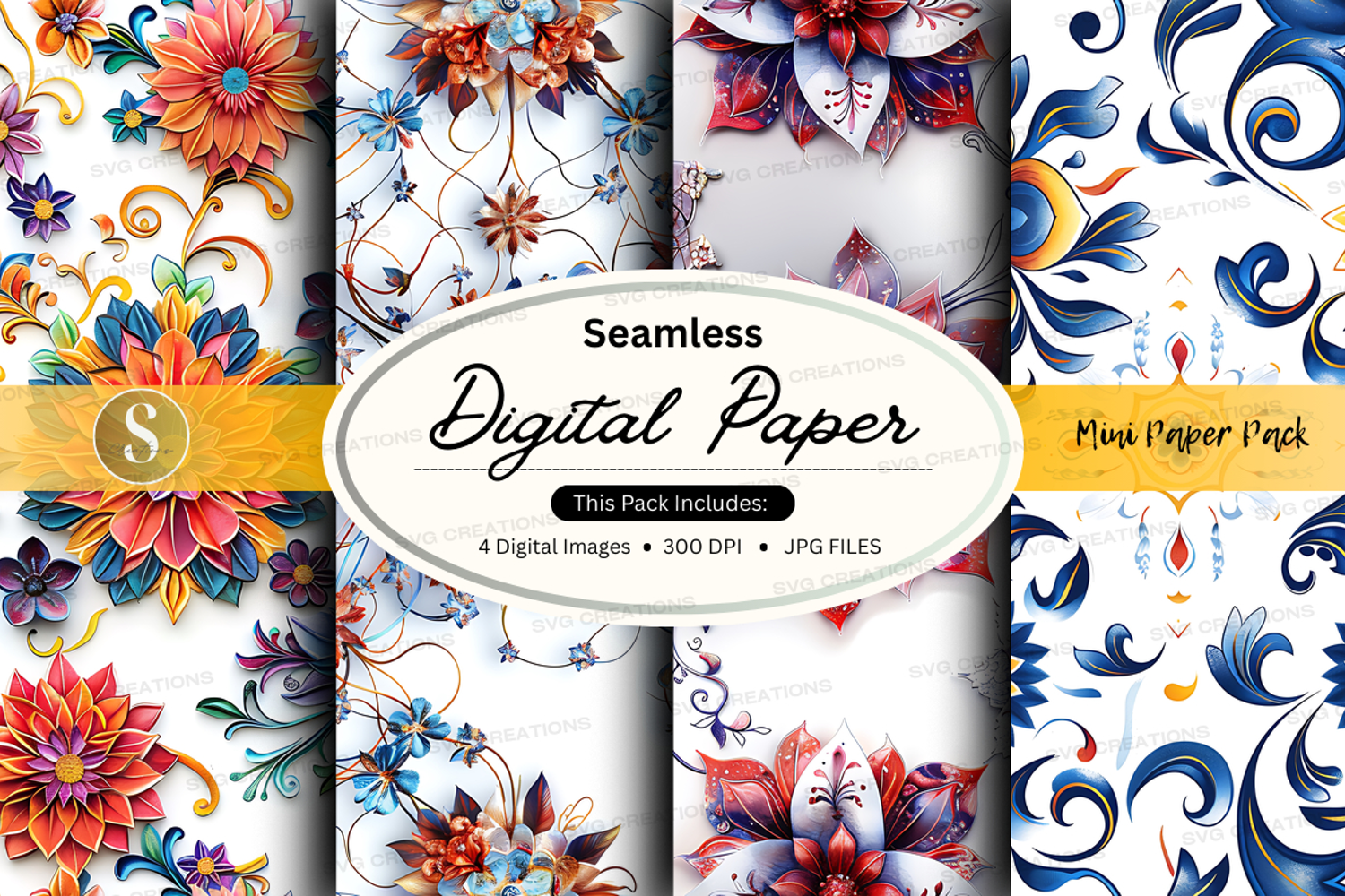 Bring instant charm and versatility to your creative projects with this exclusive set of 4 seamless pattern images. Each design is crafted to deliver vibrant detail and professional quality, perfect for both digital and print use.