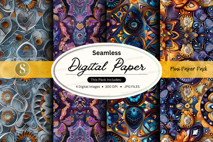 Colorful Patterns Digital Paper Seamless 300 Dpi Intricate Jpeg Files Mockup Pack