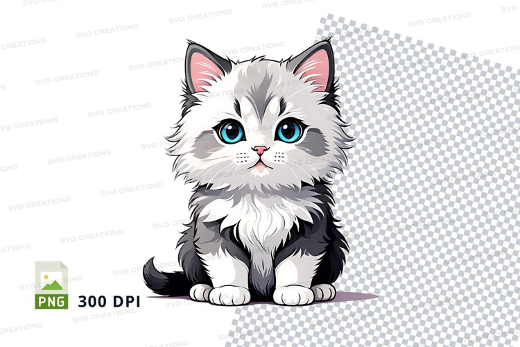 Cute Clipart Png Cat White Gray Kitten Fluffy Blue Eyes Black Paws