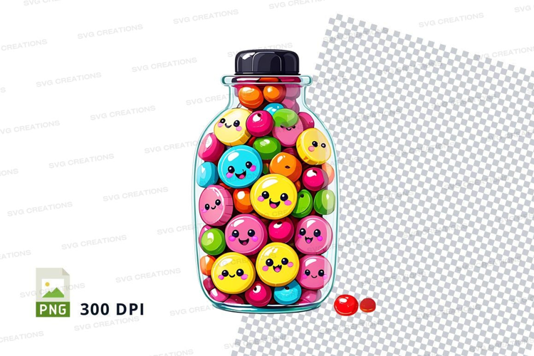Jar of colorful smiley face candies clipart png example image 1