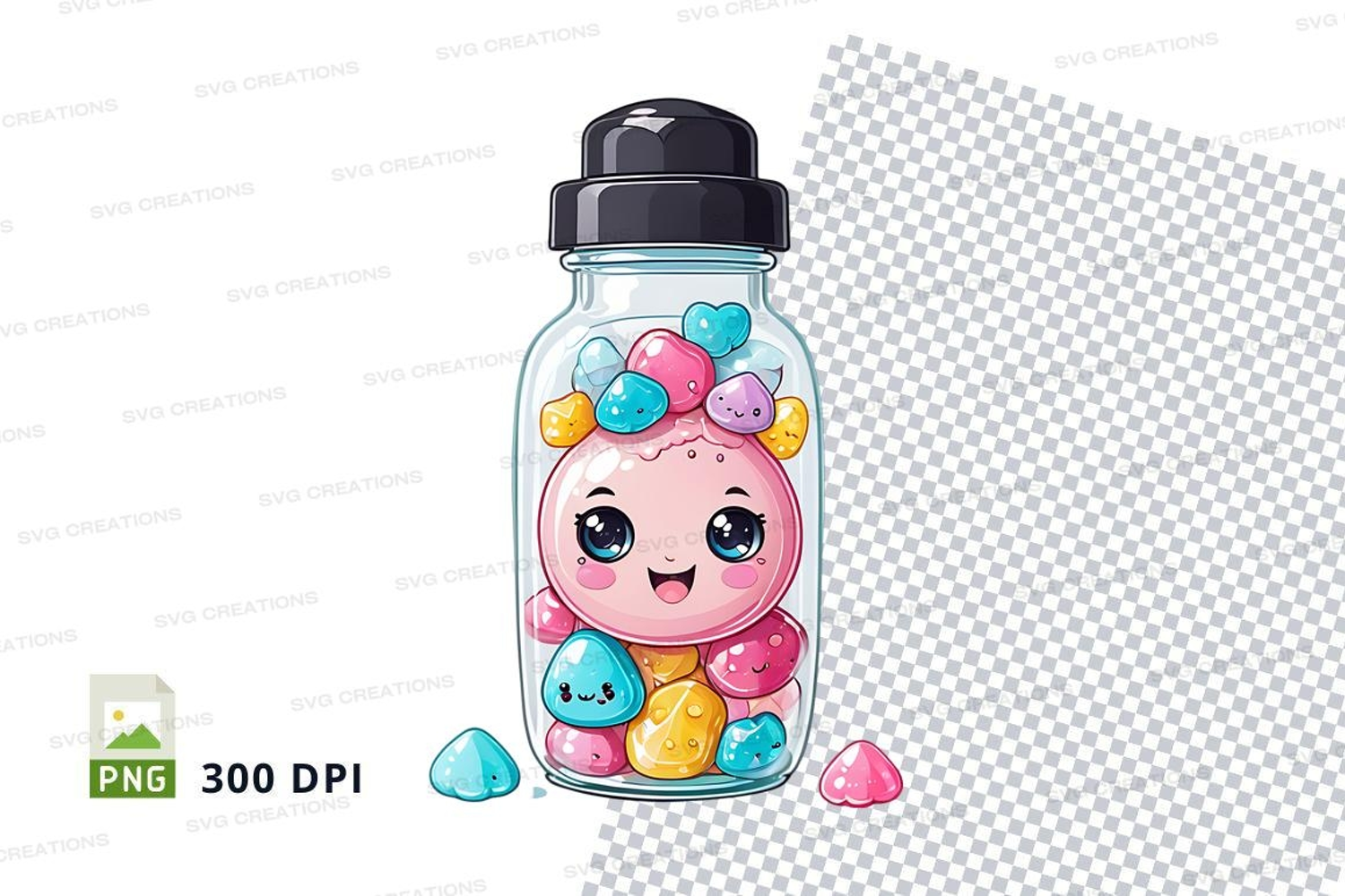 Character Cartoon Pink Hearts Colorful Mockup Bubbles Transparent Water Bottle Blue Eyes