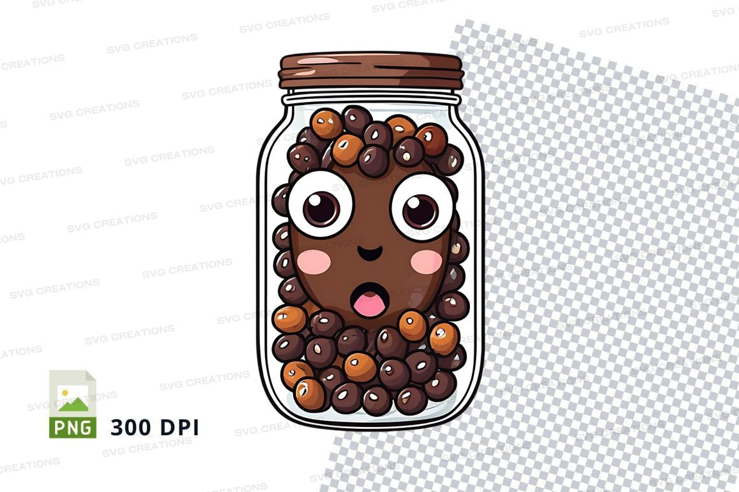Similar Design Products to Cartoon coffee beans in a mason jar clipart png