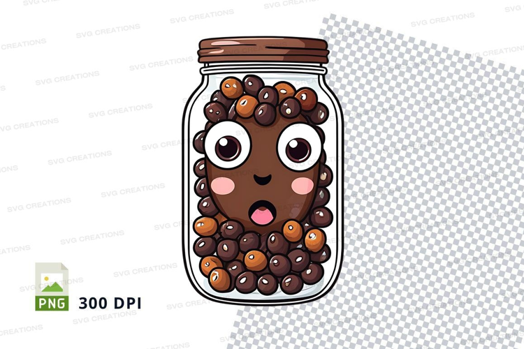 Cartoon coffee beans in a mason jar clipart png