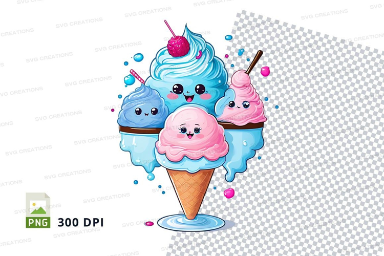 Cartoon Whimsical Colorful Clipart Png Cherries Ice Cream Cones Funny Faces Sweet Treats