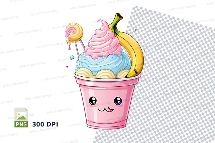 Cartoon Clipart Banana Png Ice Cream Cup Kawaii 300 Dpi Lollipop