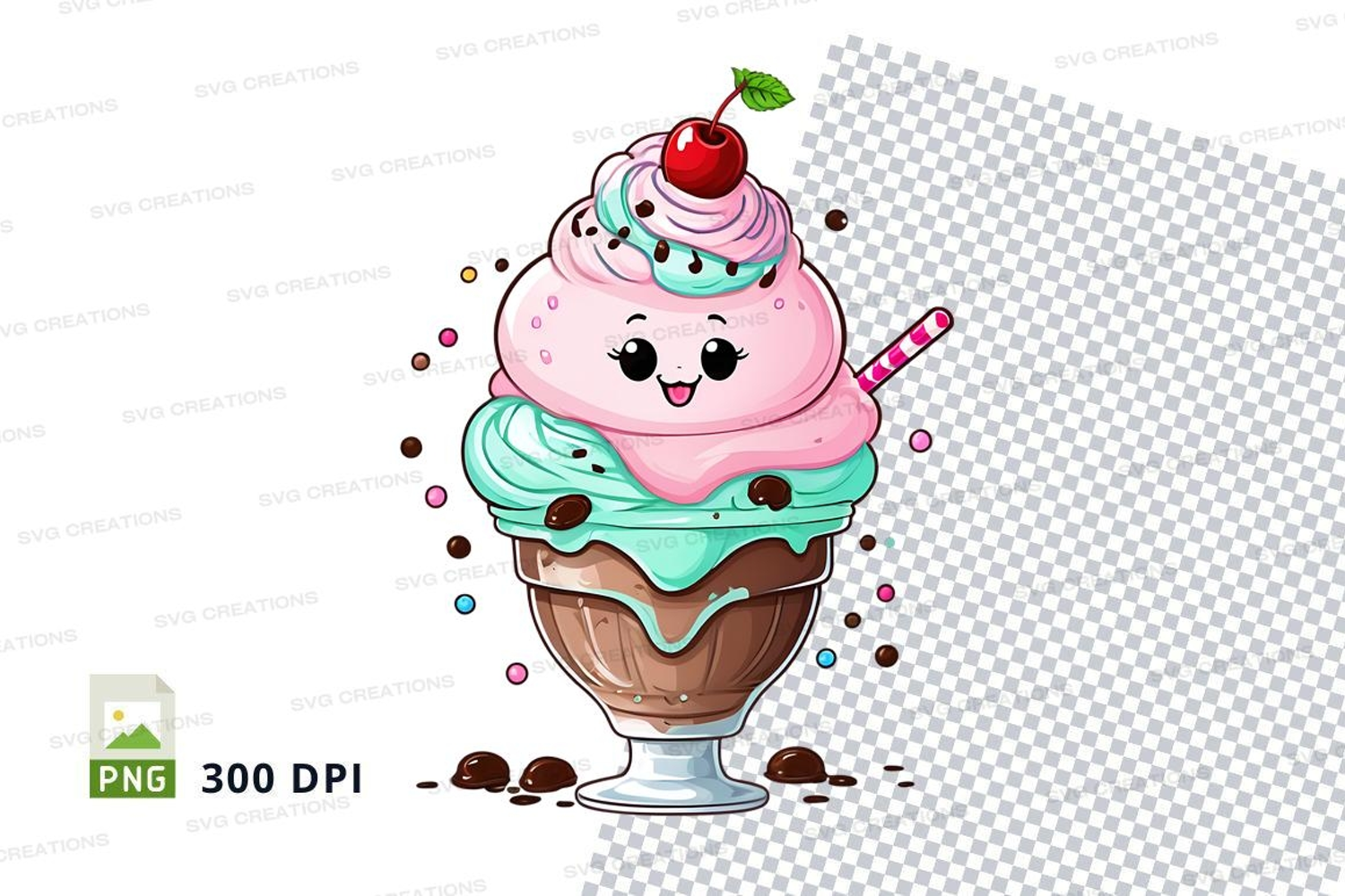 Similar Design Products to Cute cartoon ice cream sundae clipart png