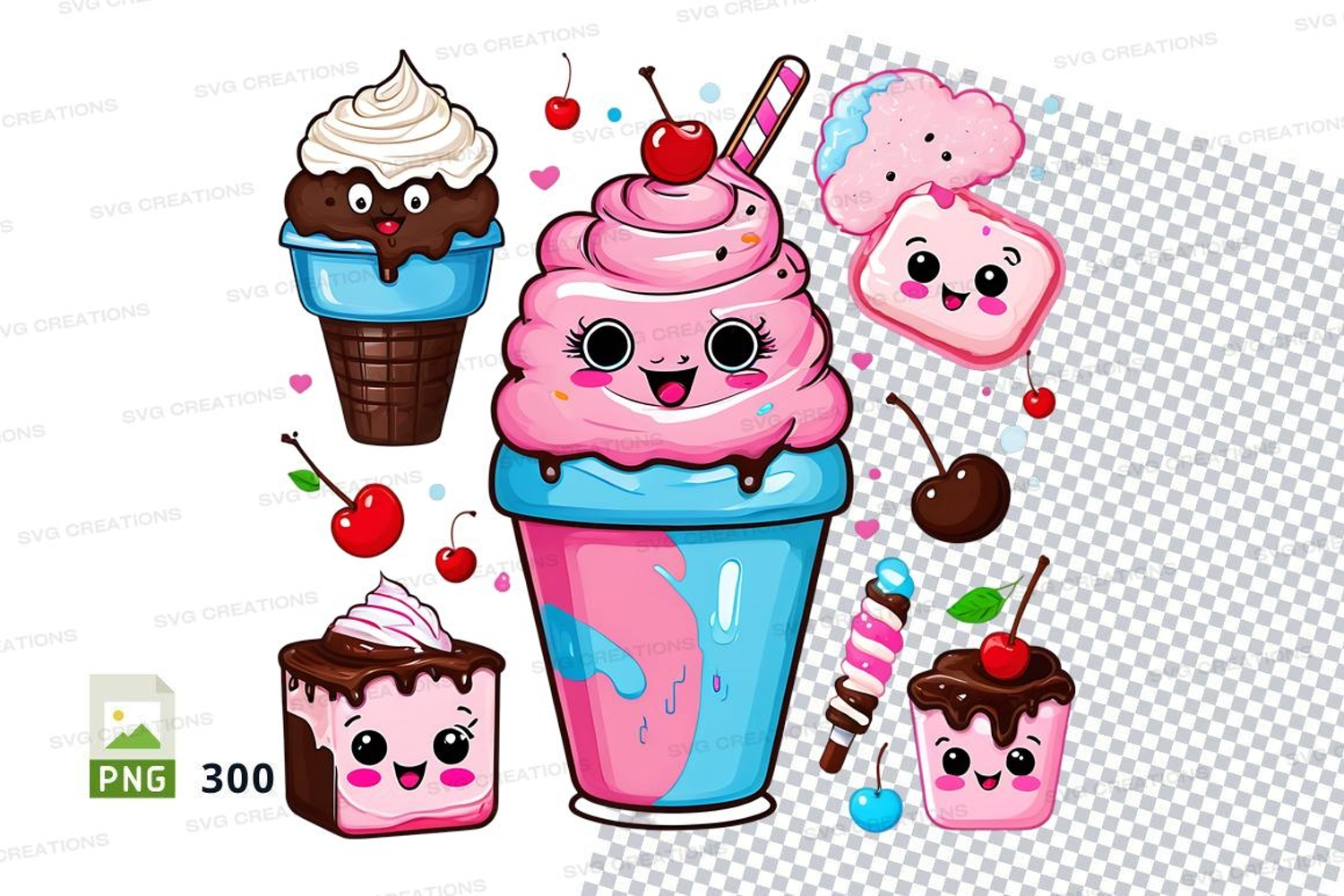 Playful Whimsical Cupcakes Clipart Png Cherries Ice Cream Cakes Frosting Cartoon Desserts