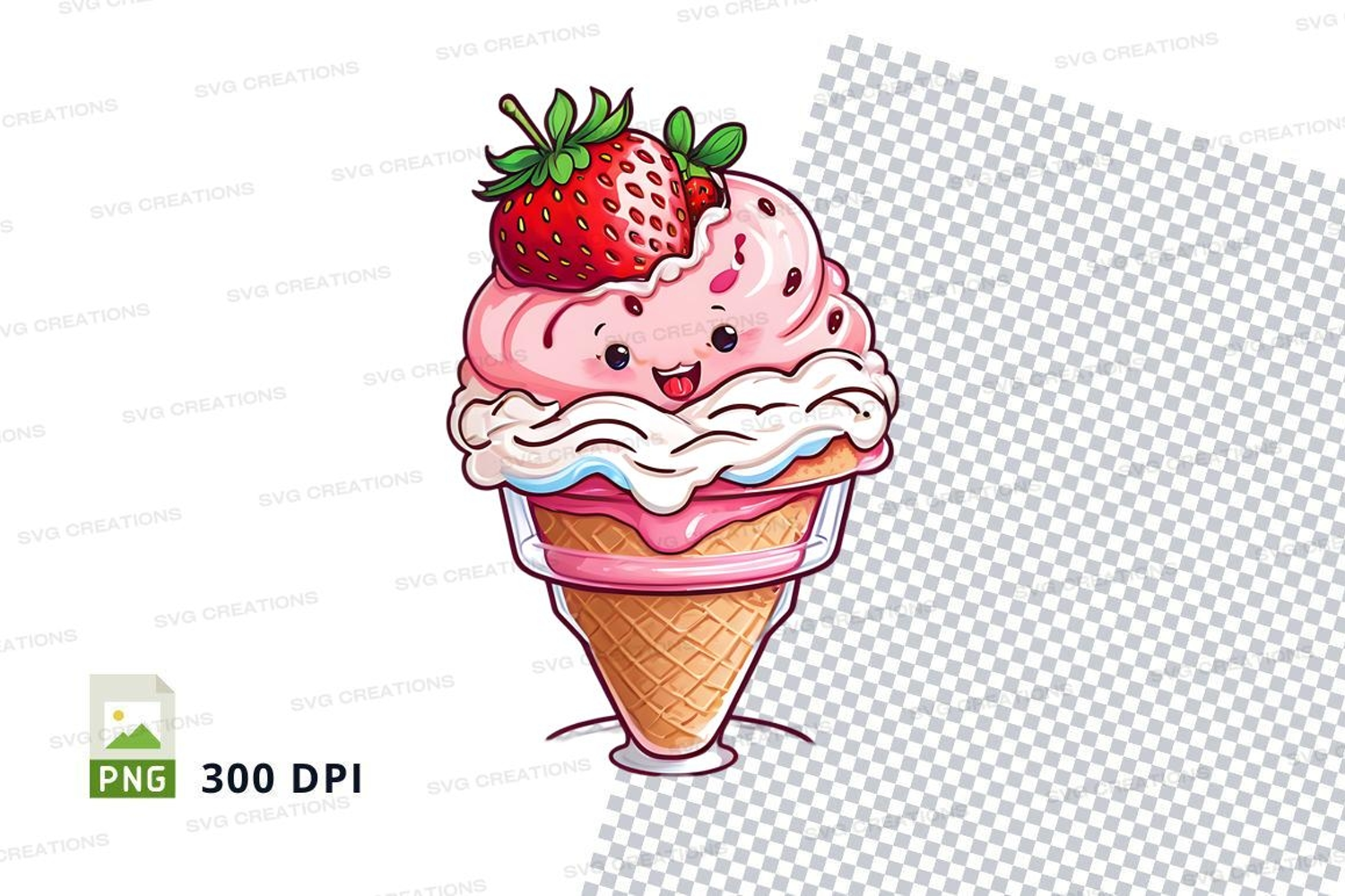 Illustration Cartoon Summer Clipart Strawberry Png Ice Cream Dessert Whipped Cream
