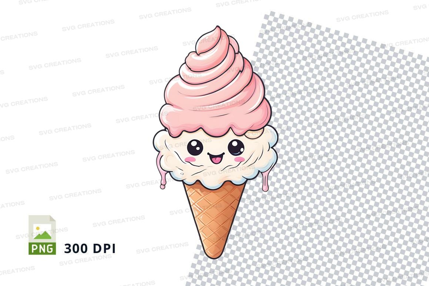 Cartoon Pink Clipart Png Cone Smiling 300 Dpi Kawaii Ice Cream Cone Clipart Pngice Cream