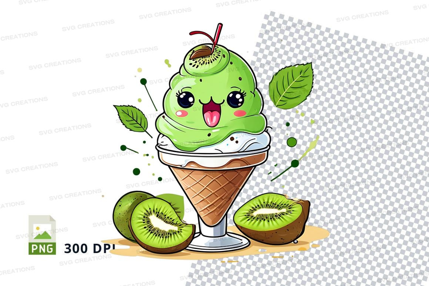 Illustration Cartoon Fruit Food Whimsical Kiwi Ice Cream Dessert Cone