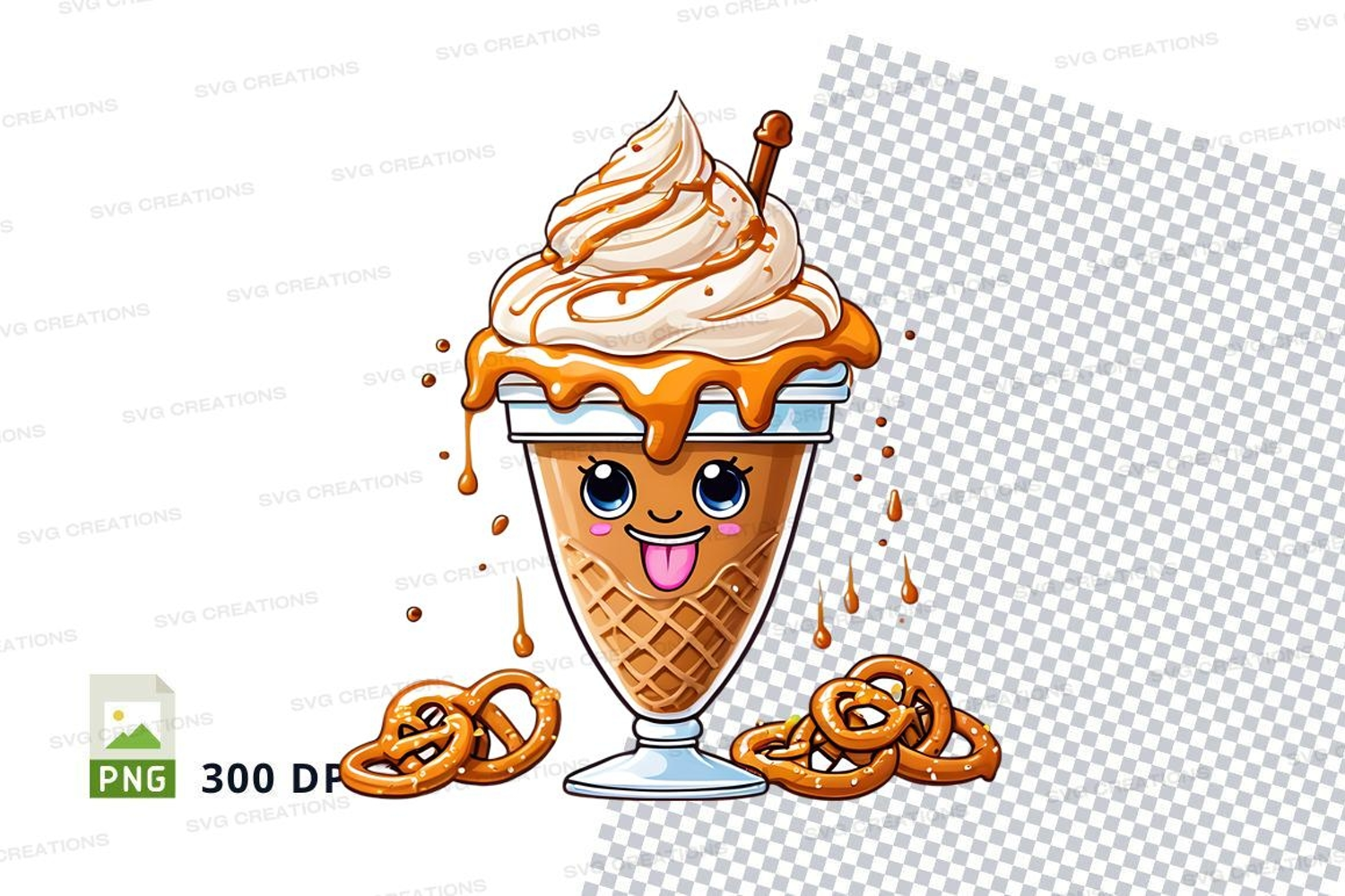 Caramel ice cream sundae with pretzels clipart png example image 1