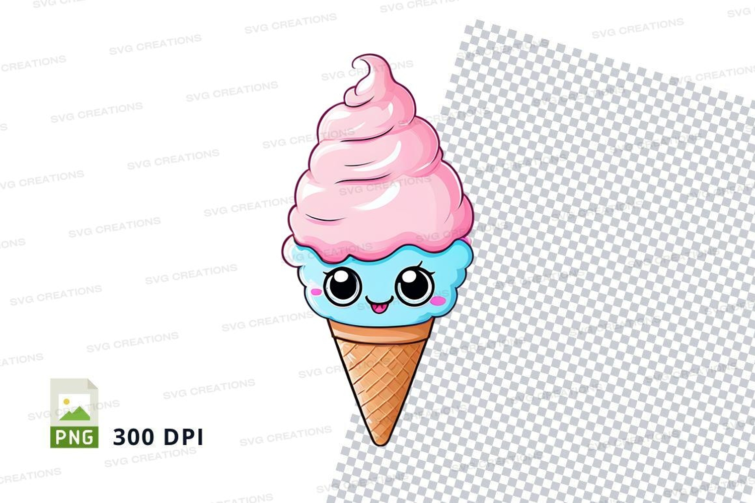 Illustration Cartoon Cute Pink Clipart Blue Face Ice Cream Dessert Cone