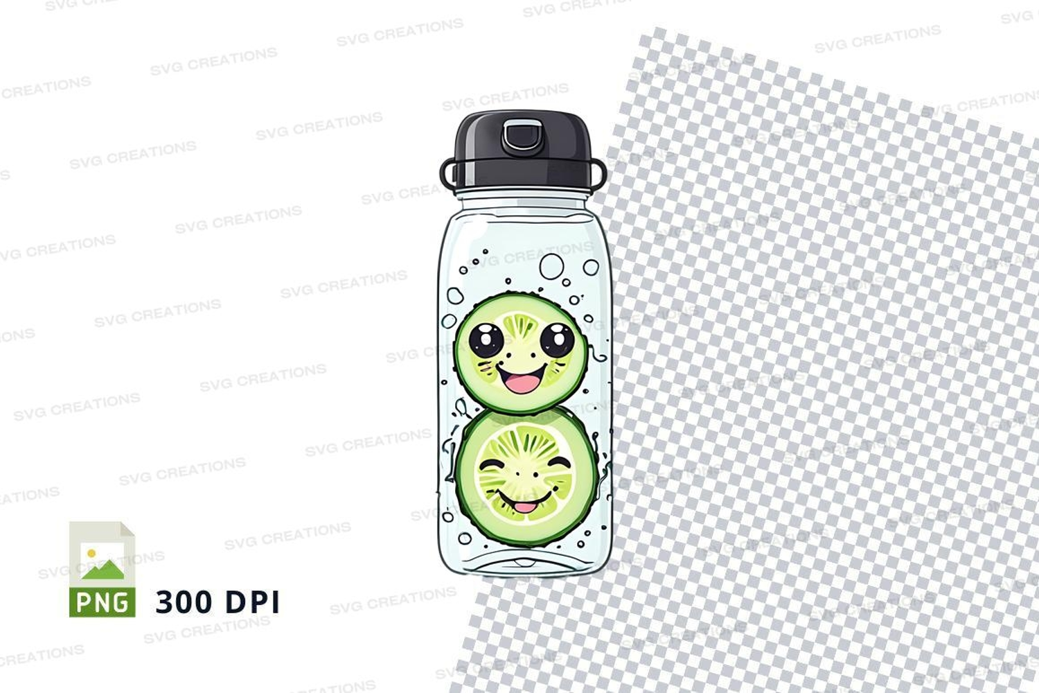 Water bottle mockup with cucumber design
