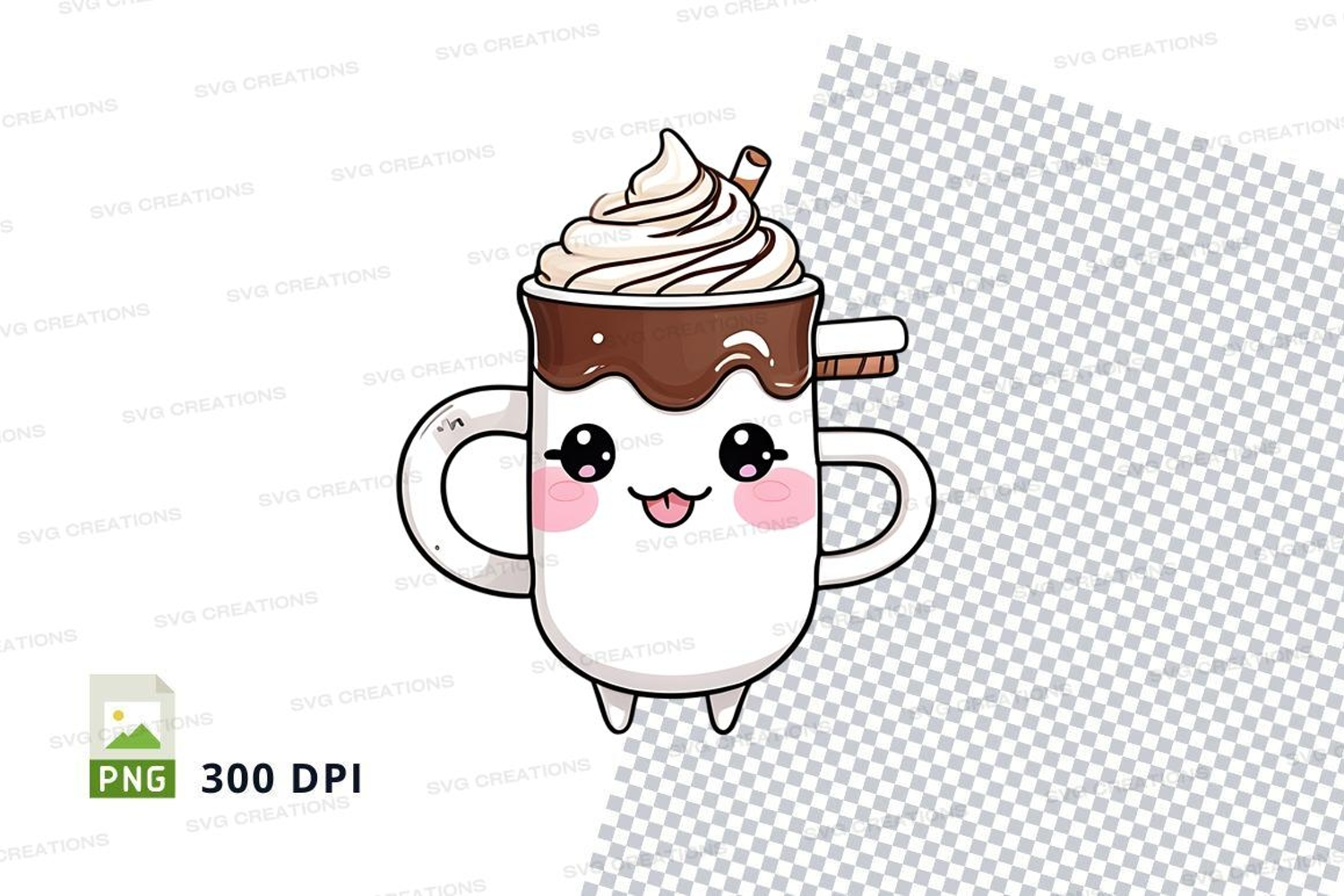 Illustration Cartoon Whimsical Cute Clipart Ice Cream Cone Smiling Face Pink Cherry Blue Drizzle