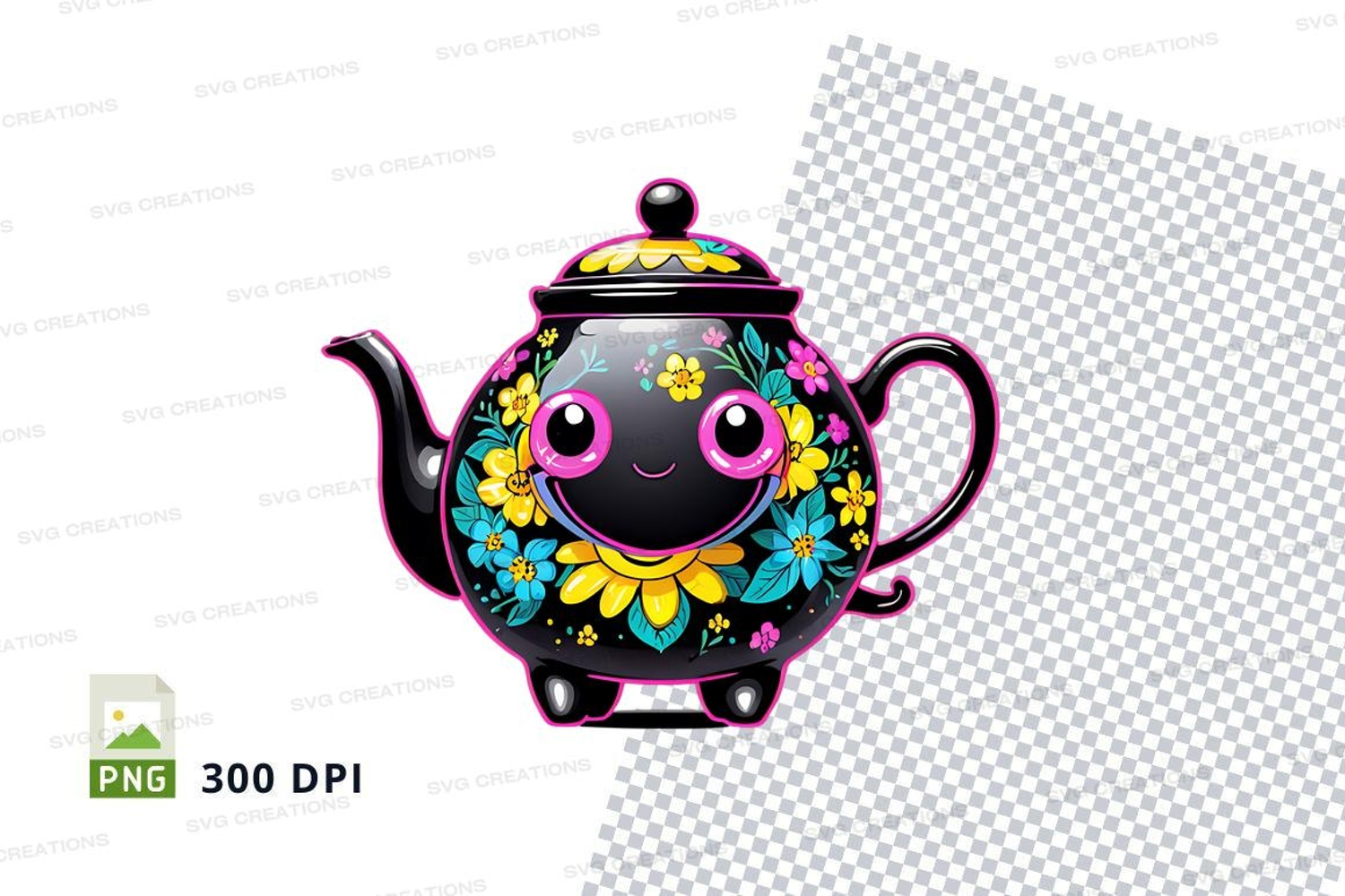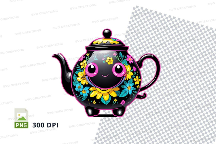 Cartoon Floral Clipart Png Teapot 300 Dpi Vibrant Colors Smiling Face