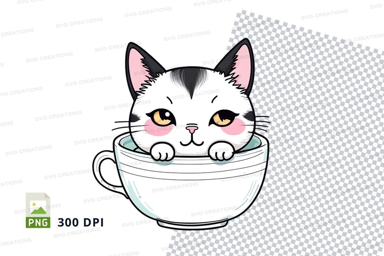 Cute cat in coffee cup clipart png example image 1