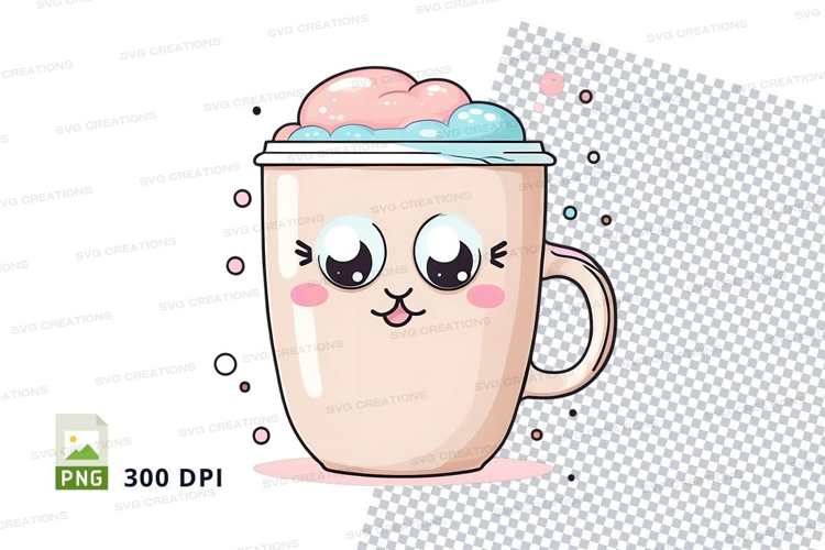 Cute cartoon coffee mug mockup with whipped cream example image 1