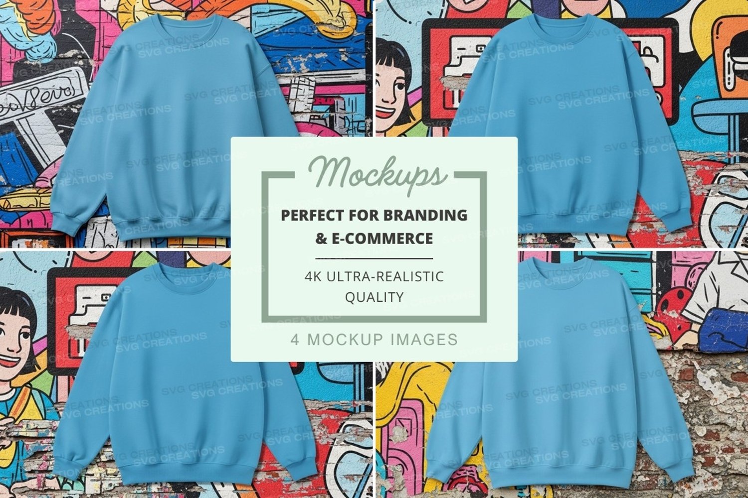 Cartoon Mockup Background Light Blue Sweatshirt Crew Neck