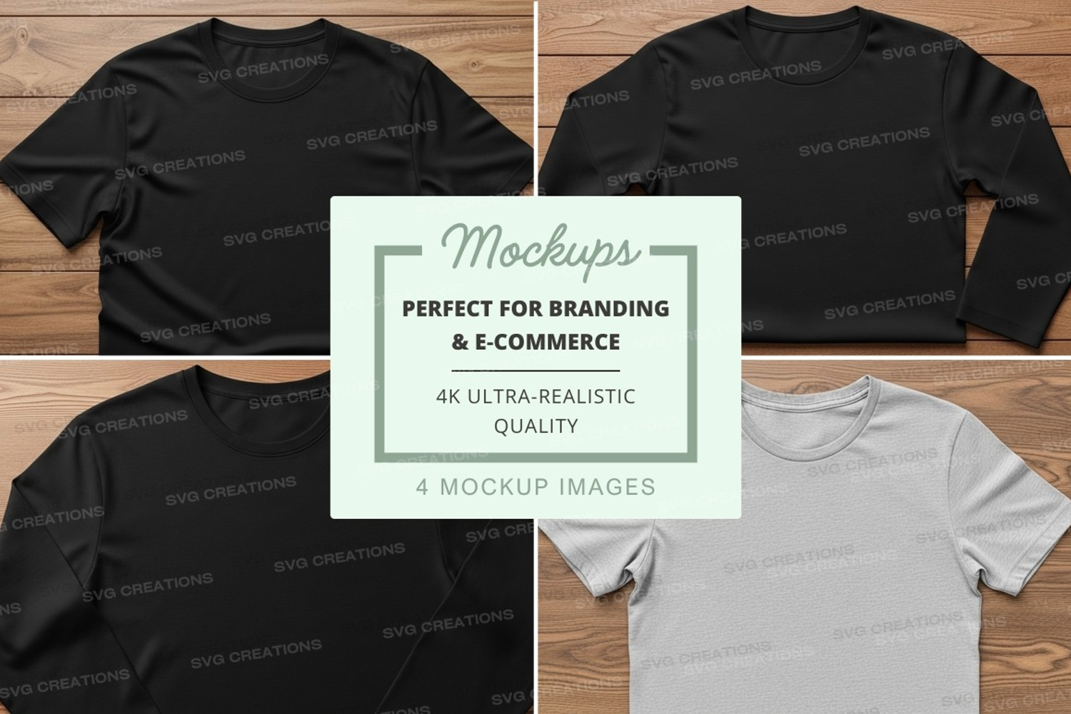 Black T-shirt Clothing Mockup Apparel White Wooden Background