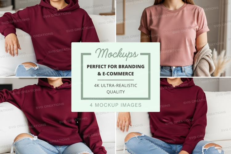 Mockup Burgundy Hoodie Models Casual Wear Comfortable Clothing