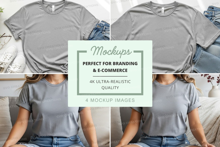 Gray t-shirt mockup with models and accessories