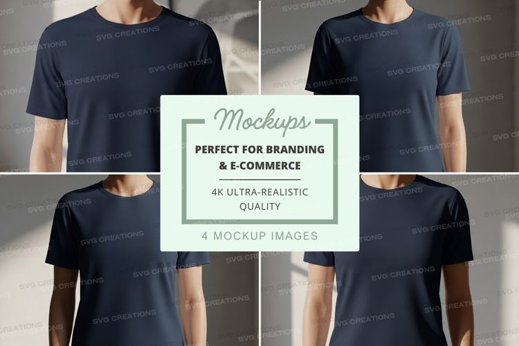 T-shirt Mockup Background Navy Blue Plain Mannequin Crew Neck