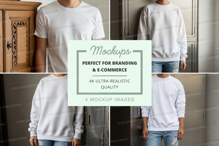 Mockup Backgrounds Model White Front View Side View Back View Sweatshirt