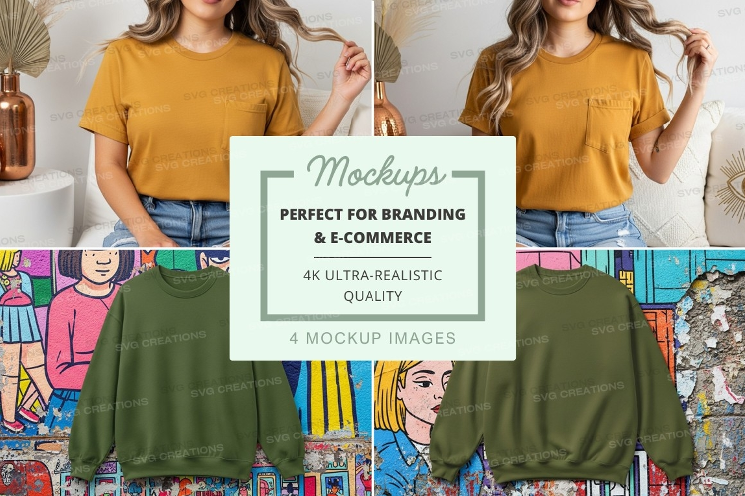 T-shirt Mockup Colorful Background Hoodie Mockup Green Hoodie Mustard Yellow T-shirt Model Display