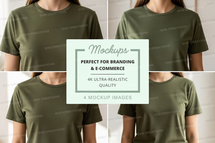 T-shirt Clothing Mockup Apparel Front View Back View Olive Green