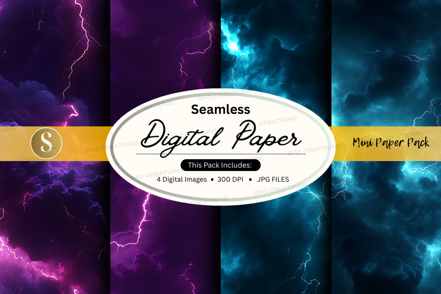 Digital Paper Seamless Pattern Lightning 300 Dpi Jpg Files Dark Clouds Stormy Background