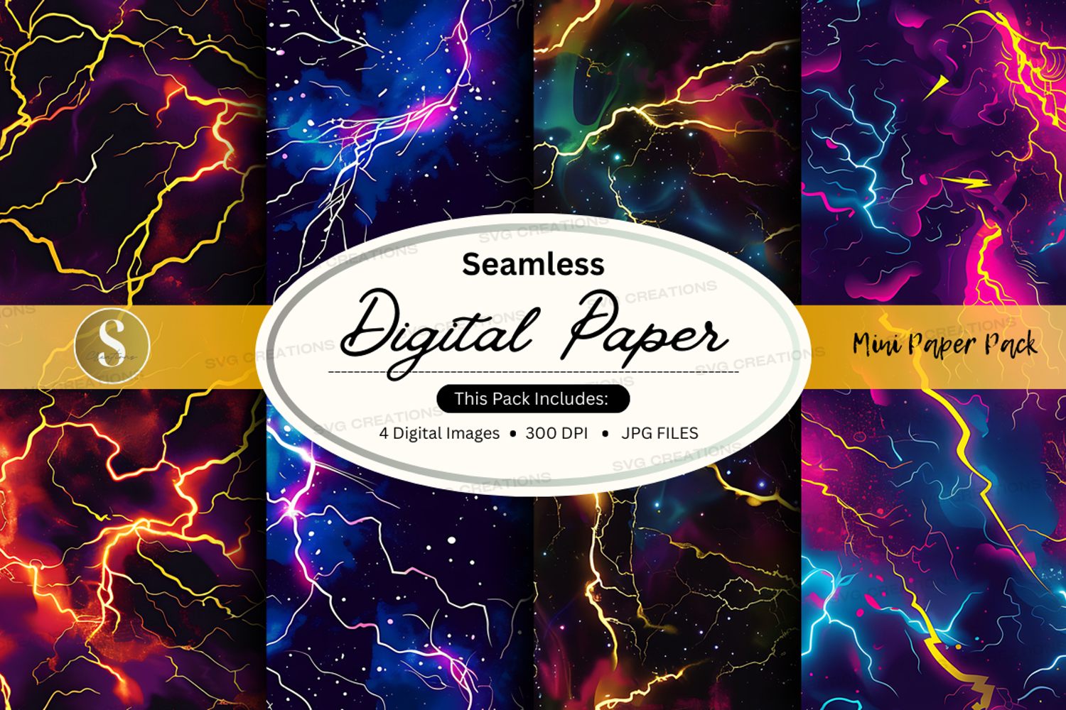 Pack Colorful Digital Paper Seamless Jpg Lightning 300 Dpi Dark Background