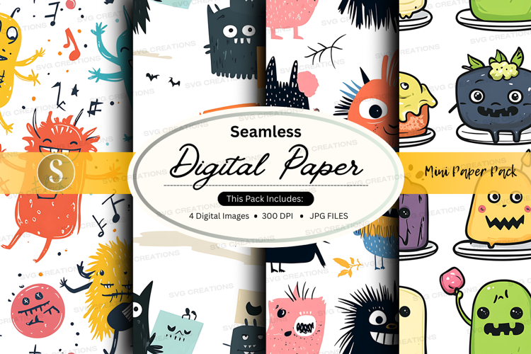 Playful Whimsical Halloween Digital Paper Seamless Patterns Illustrations High Resolution 300 Dpi Jpeg Files Monster Themes