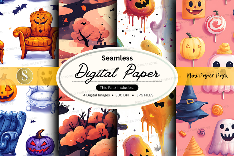 Illustration Halloween Digital Paper Bat Spooky Ghost Scrapbooking Festive Crafting Jack-o'-lantern