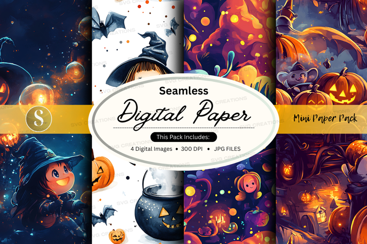 Halloween Digital Paper Witch Bat Pumpkin Seamless Pattern Jpeg Magical 300 Dpi
