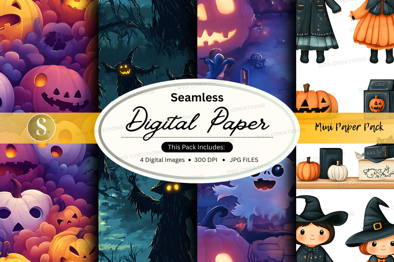 Similar Design Products to Halloween themed seamless digital paper pack