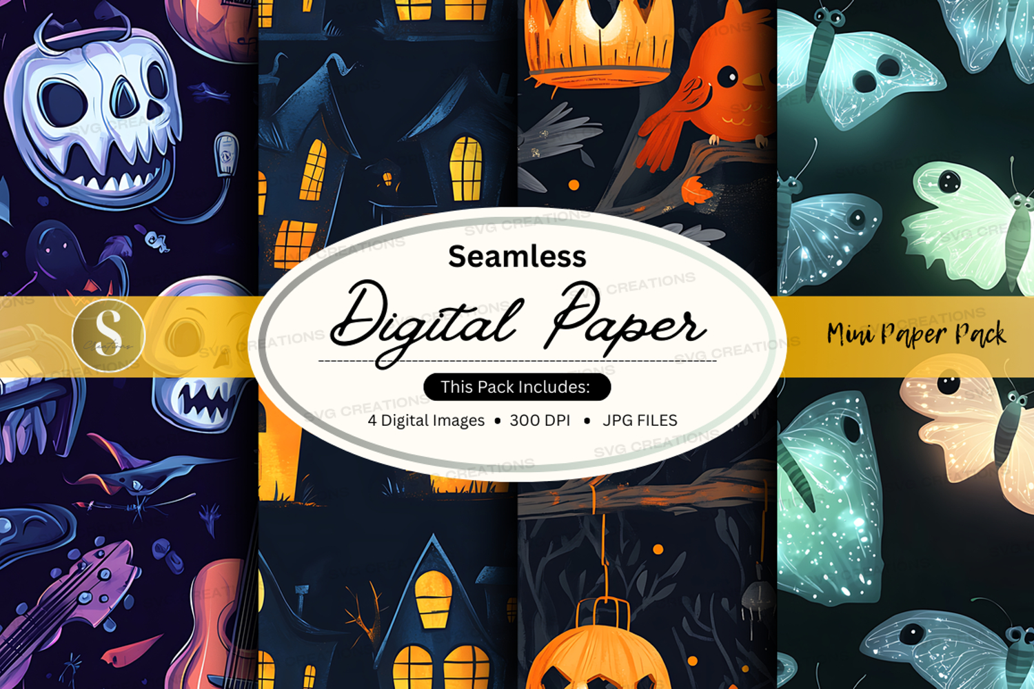Halloween Digital Paper Jpeg 300 Dpi Skeletons Haunted House Ghosts Jack-o'-lantern