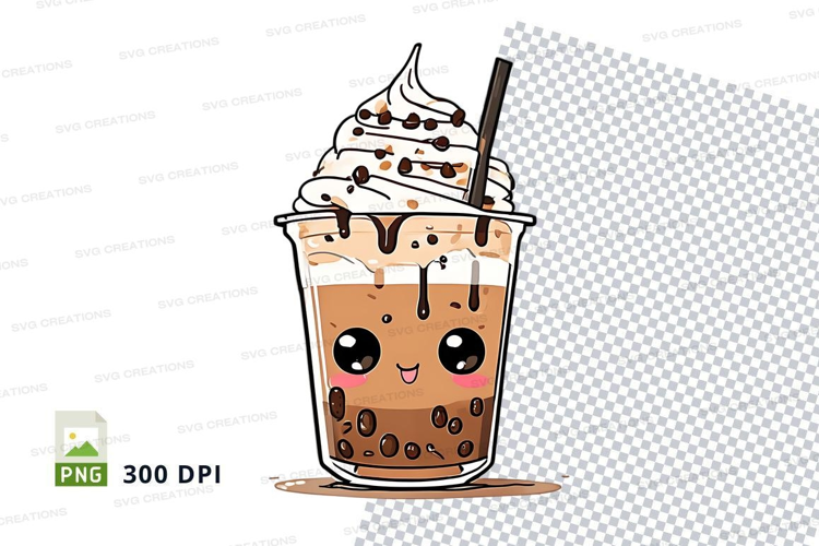 Illustration Cartoon Drink Png 300 Dpi Whipped Cream Iced Coffee Chocolate Drizzle