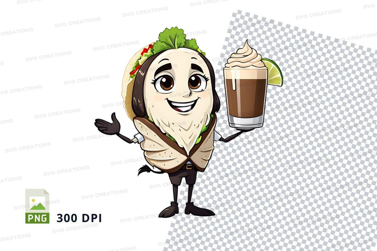 Cartoon taco holding beer mockup example image 1