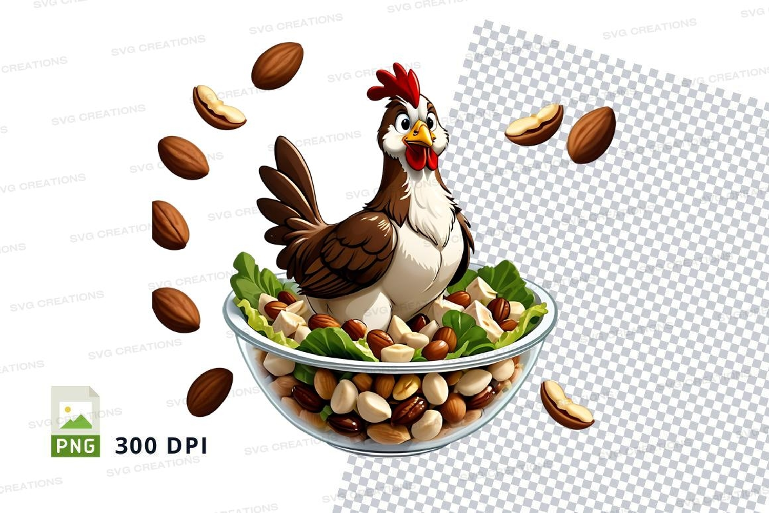 Illustration Clipart Png Chicken Greenery Bowl Nuts 300 Dpi