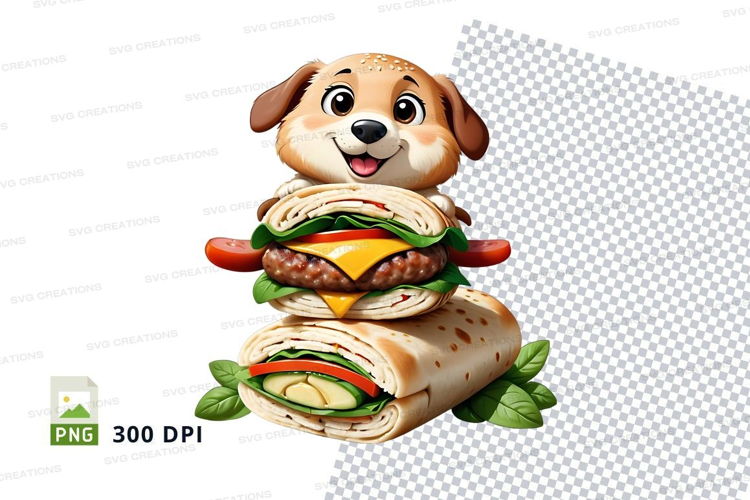 Illustration Cartoon Funny Food T-shirt Mockup Dog Wrap Sandwich