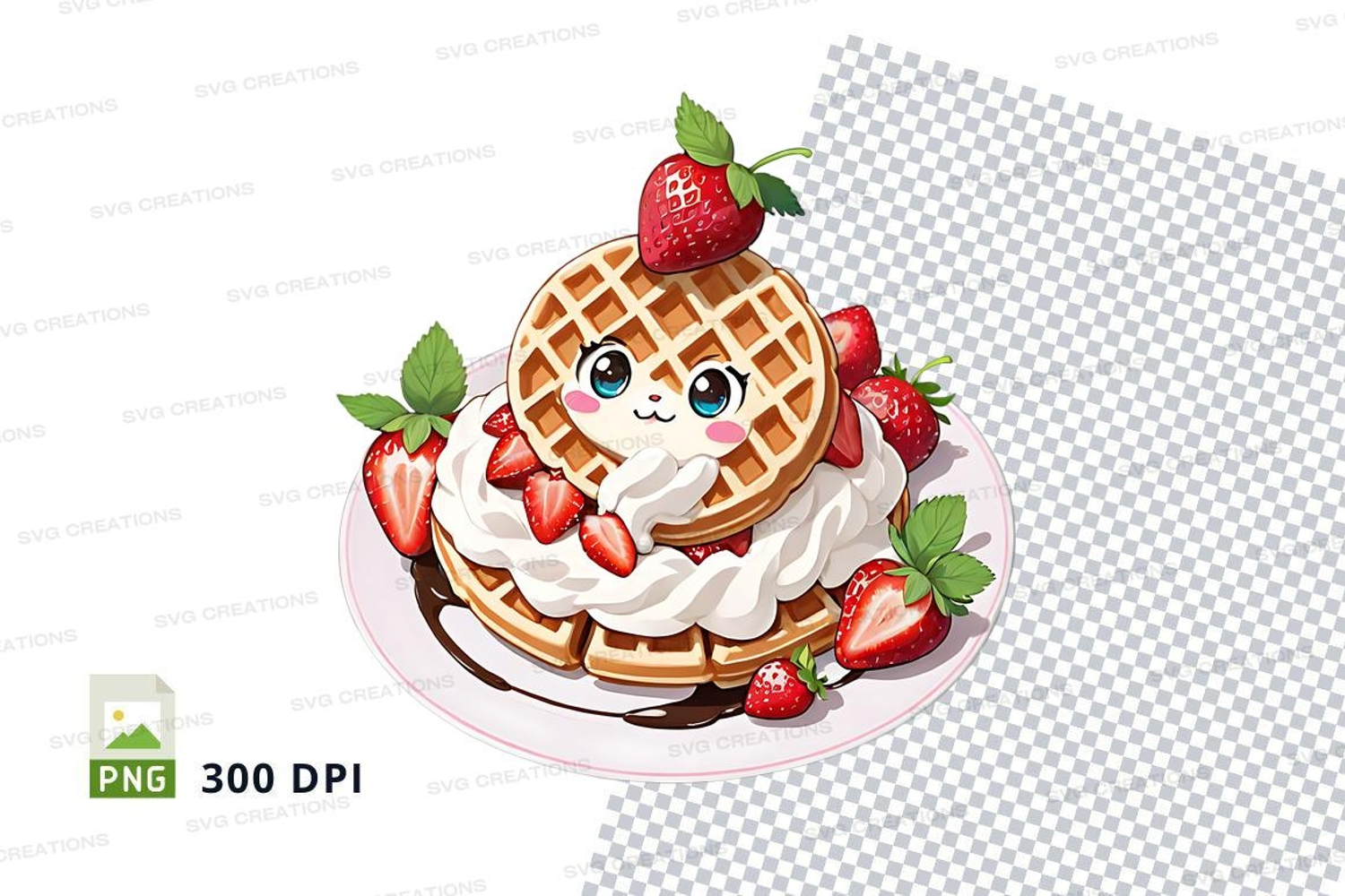 Illustration Character Food Clipart Strawberries Png Plate Whipped Cream Waffle