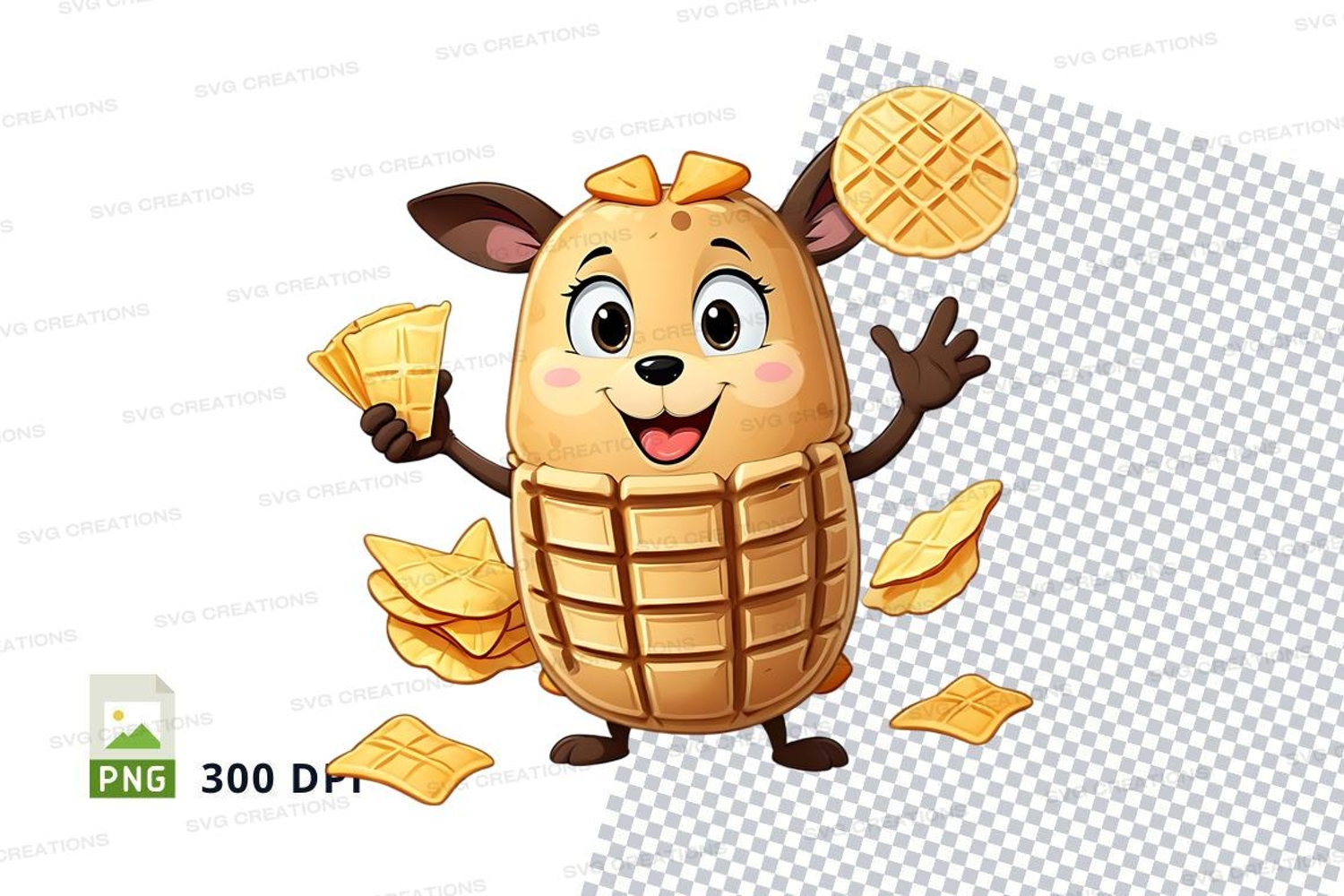 Similar Design Products to Cartoon waffle character clipart png