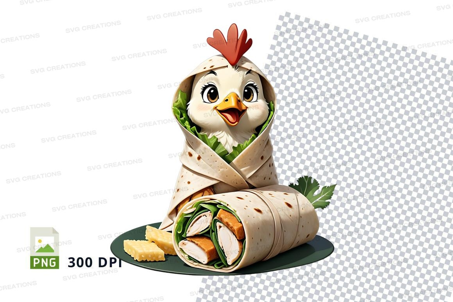 Cartoon chicken wrap clipart png example image 1