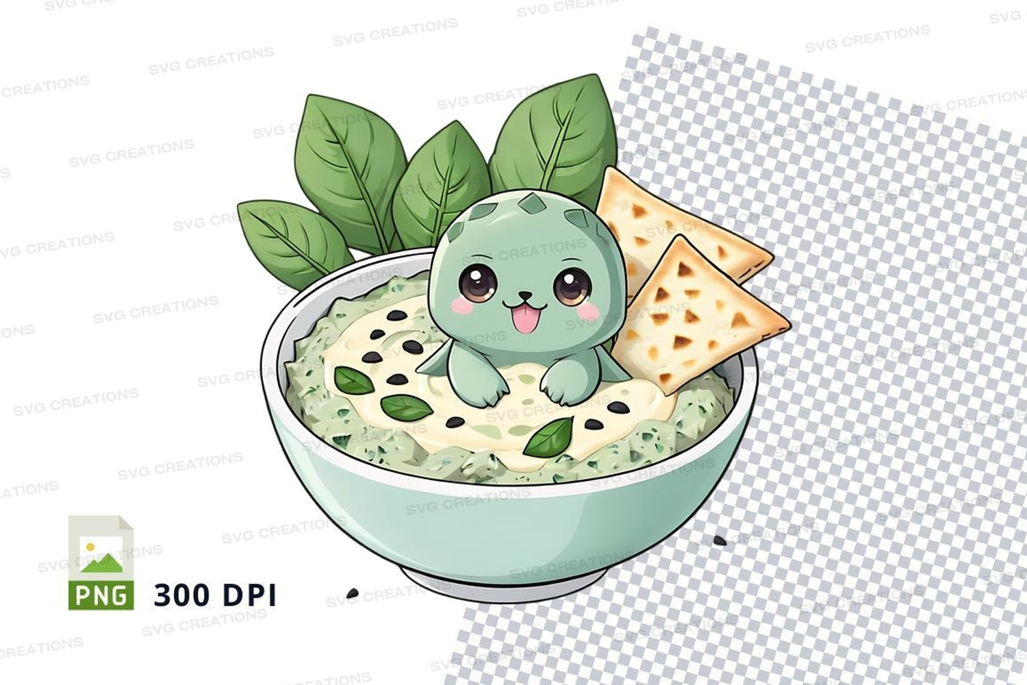 Similar Design Products to Illustrated bowl of dip with crackers and cartoon character