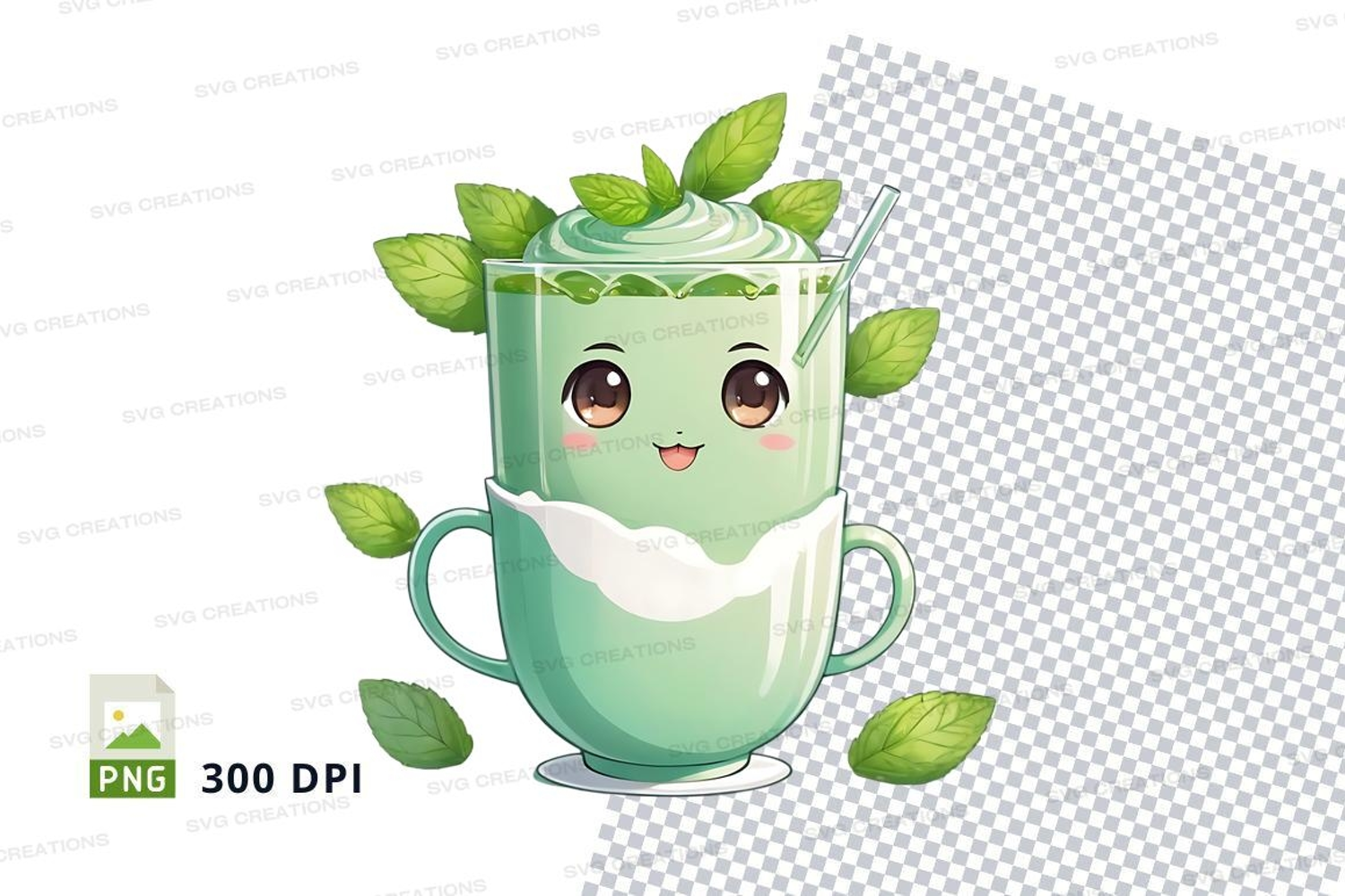 Illustration Cute Clipart Leaves Drink Png Tea Green Tea Tea Cup Milk Froth