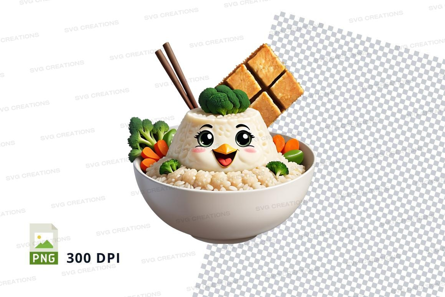 Illustration Cartoon Funny Food Mockup Vegetables Chopsticks Rice Bowl